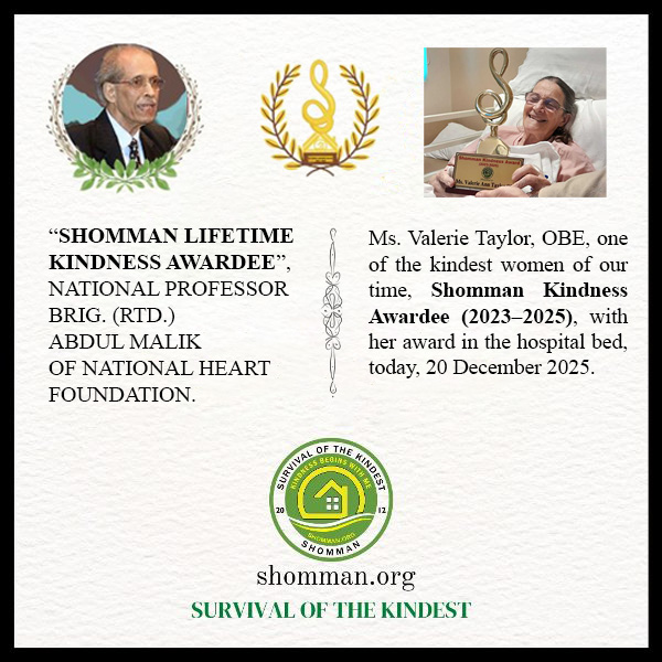 The ‘CENTRE FOR KINDNESS & HAPPINESS STUDIES’ is a KIND LABORATORY organized by SHOMMAN Foundation. This is a knowledge-based academia to engender a Moral Revolution focusing on kindness and happiness. Its objectives are to enhance and update Moralities, Gratitude, Forgiveness, Culture of Giving, and Humbleness – those merits that need to be a ‘Kind Person’. Extensive research has been going on to explore ‘Kindest people of the world. It is mainly on the importance of the ‘Social Psychology of Kindness (& other moral values) and its effects on human’s well-being’ and finding out the ‘kindest people’ on this planet to motivate the younger generation. Along with this study, we have organized (by Dr. Rubaiul Murshed as its main author) to write a book on the ‘Kindest People in the 20th Century (1901-2021)’. In fact, he has been studying/ researching biographies & lifestyles (around the world) meticulously since 2020 and dreams of publishing the book titled ‘The 100 Kindest People of the 20th Century’ by 2024/25. One of the key objectives of this study is to identify and explore the lives of the 100 kindest people of the 20th century – the most devastating period in the social history of mankind (in the last five thousand years). Through this research, I want to evaluate their act of kindness along with their matchless influences on our societies, from a heterogeneous perspective; and understand how and to what extent their contribution has shaped the modern world. Another important objective of the research is exploring the strong linkage between ‘Kindness and well-being of kind people’. Specially designed Courses for School Children and Empirical Research related to moral values and social work are also part of the CKHS’s effort. Awareness of social justice is a part of our activities. We introduced a slogan, “SURVIVAL OF THE KINDEST”. This is a journey towards building personal and social learning for ‘EDUCATION 2030’.